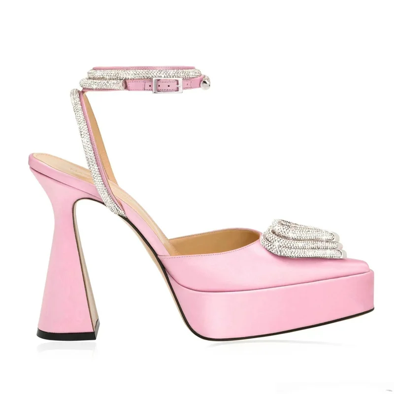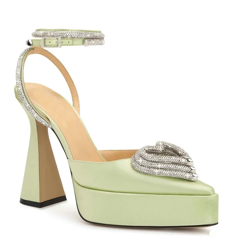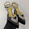 Women’s Crystal Platform Sandals – Pointed Toe, Thin Heel, Ankle Strap Fashion Shoes