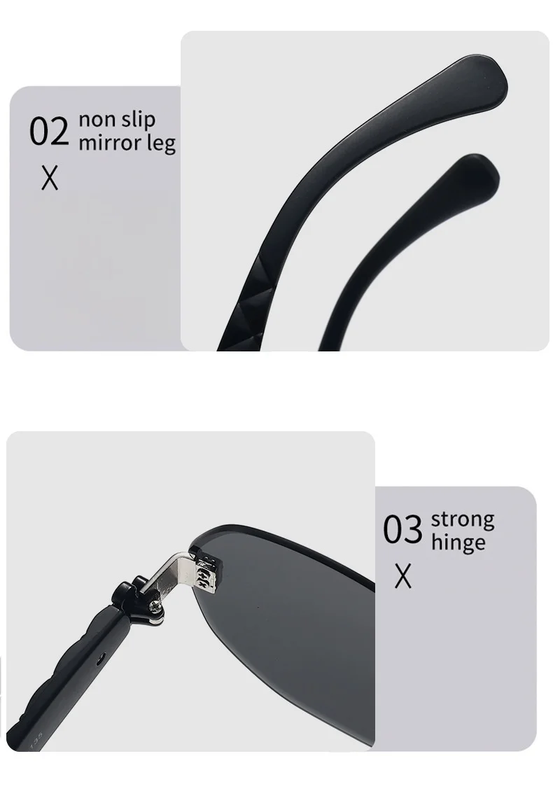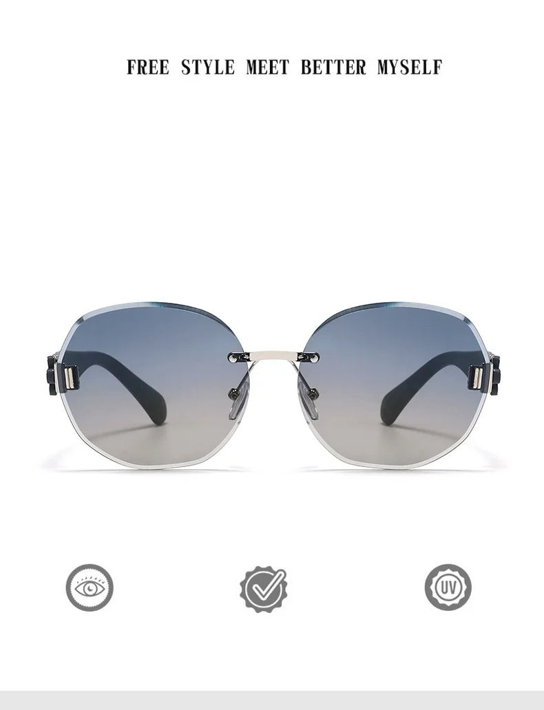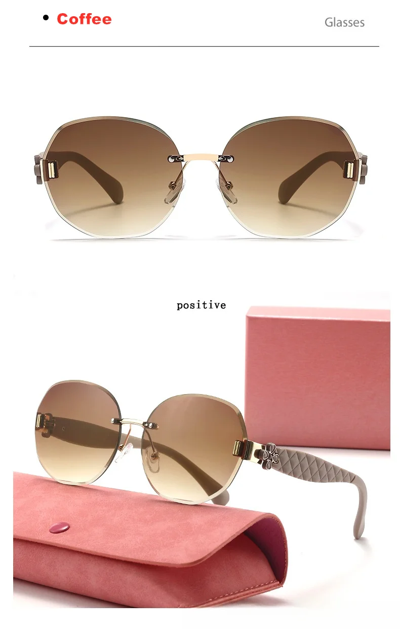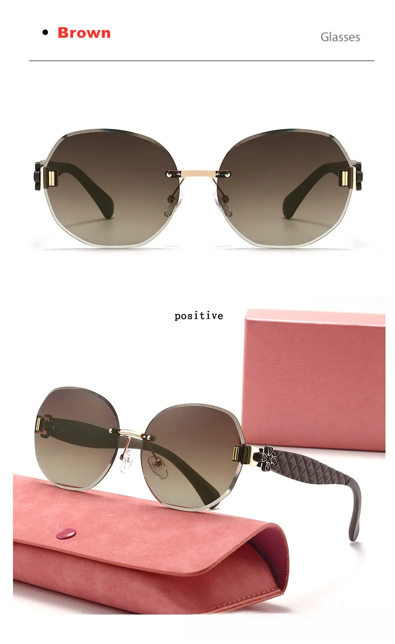 Women’s Frameless Oval Sunglasses – High-End Luxury Small-Flower Temple Fashion Shades, designed for women who love luxury with a soft, feminine touch. The delicate small-flower temple design adds a signature chic look, while the lightweight build delivers effortless comfort. Whether you’re outdoors, traveling, or enjoying sunny days in style, these luxury shades elevate every outfit instantly.