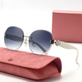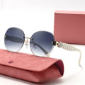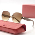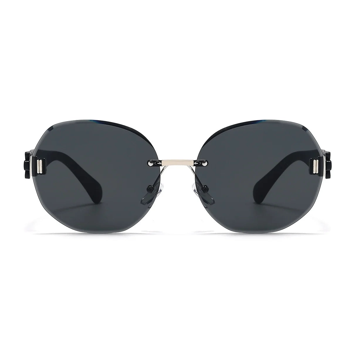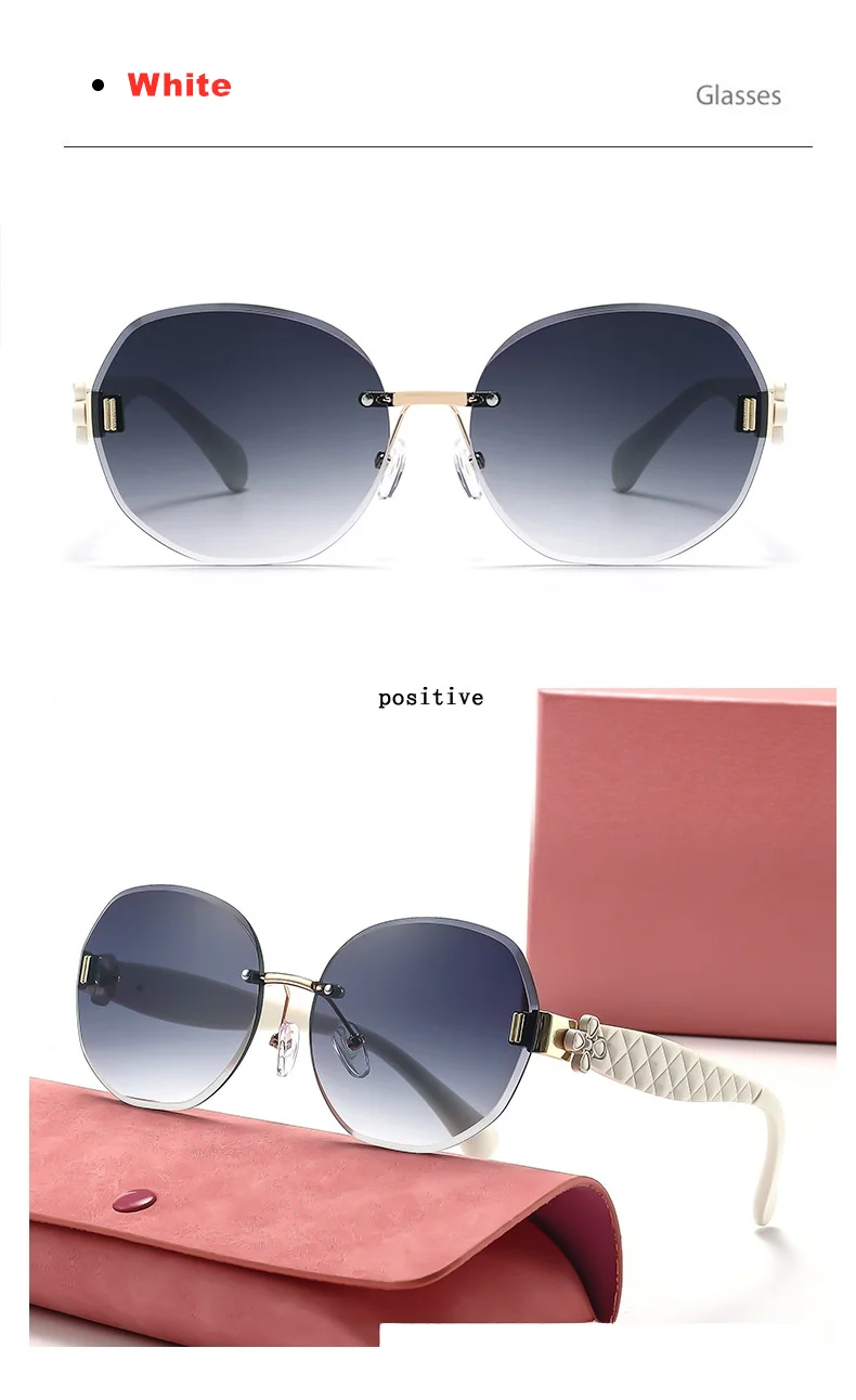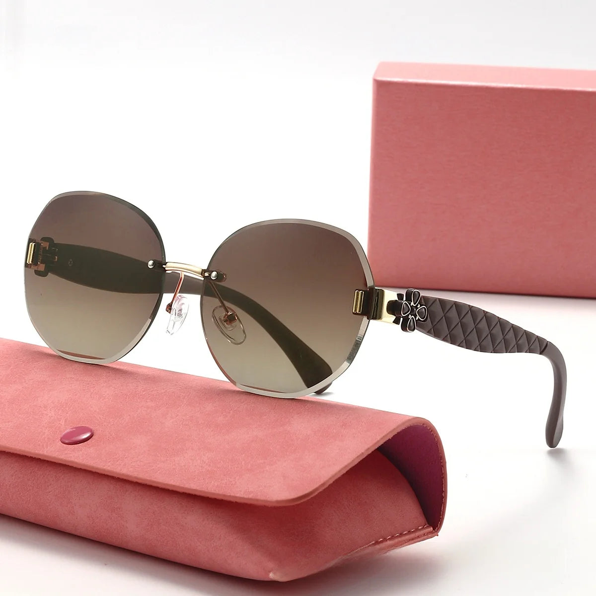 Women’s Frameless Oval Sunglasses – High-End Luxury Small-Flower Temple Fashion Shades