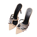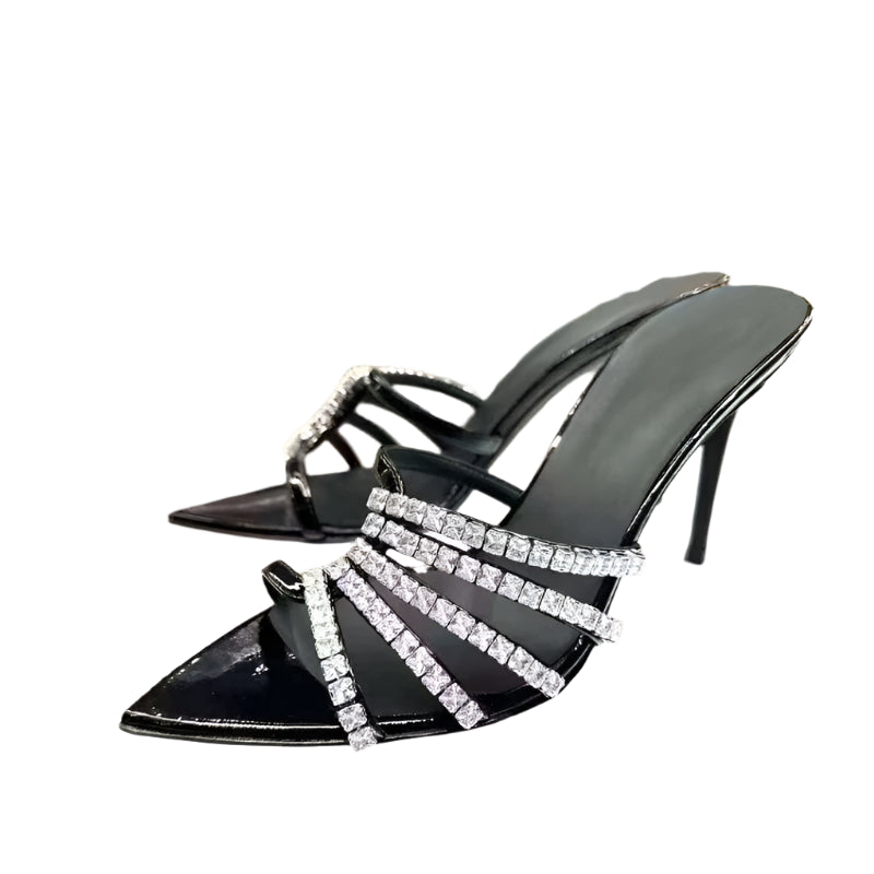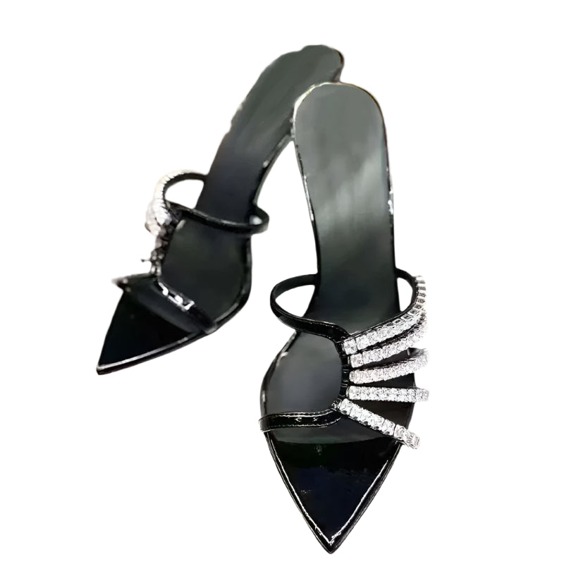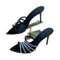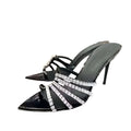 Women’s Rhinestone Stiletto Heels – 24 Summer Black Pointed Open Toe Slippers Sandals, Versatile Fashion Footwear