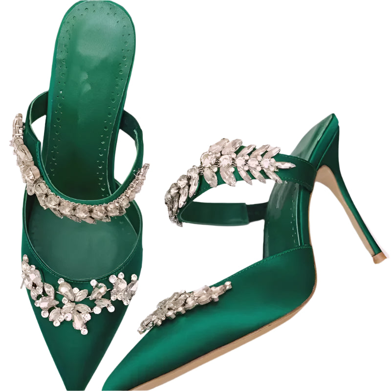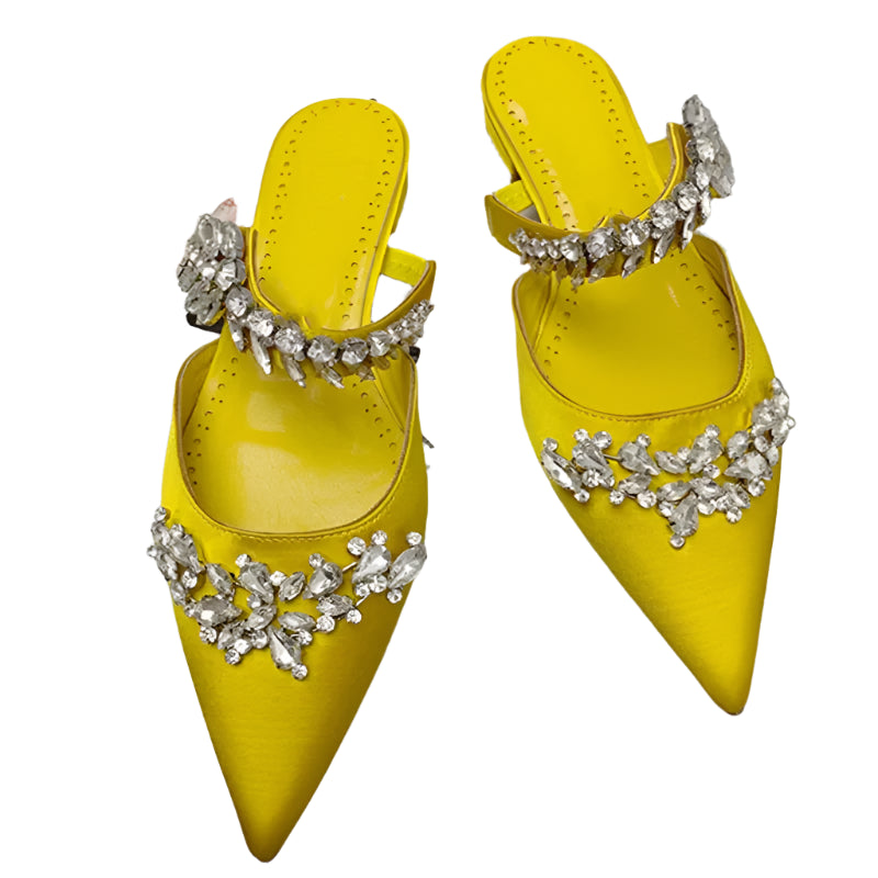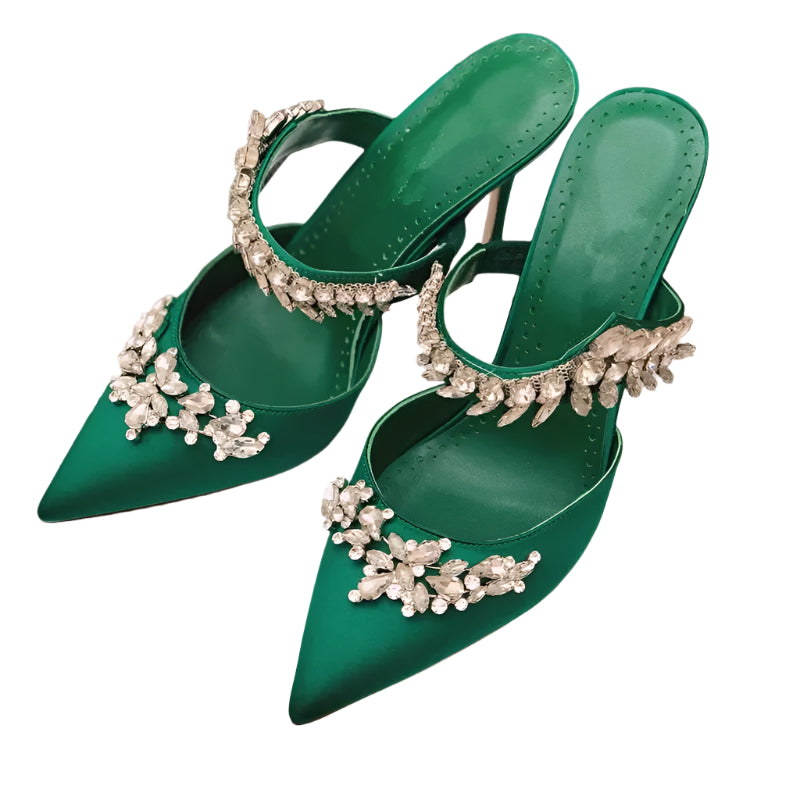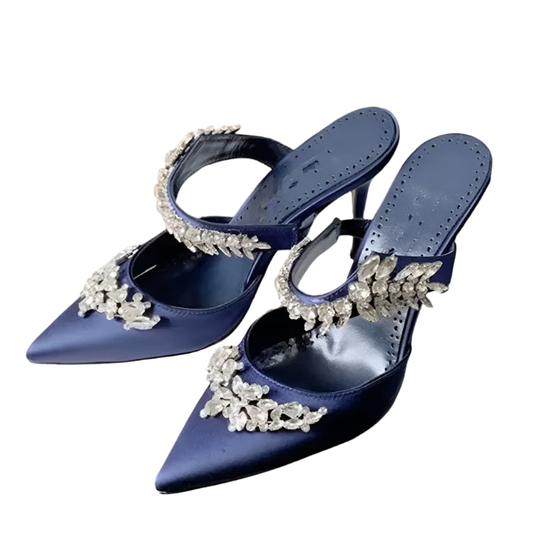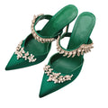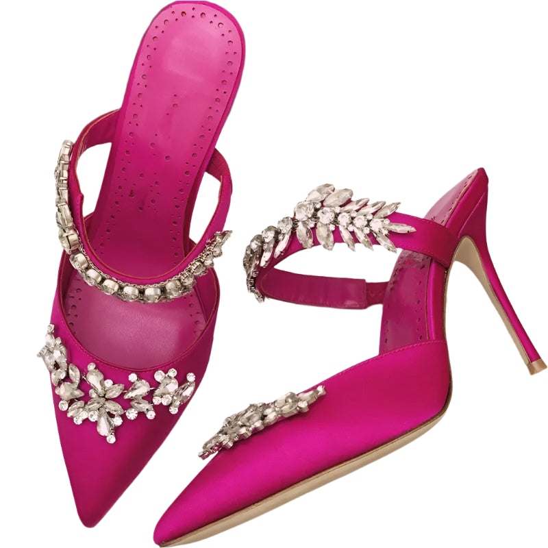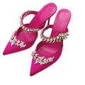 Women’s Spring/Summer High Heel Sandals – Pointed Toe Fashion Shoes with Water Diamond Chain, Thin Heel Banquet Party Style