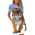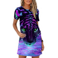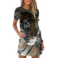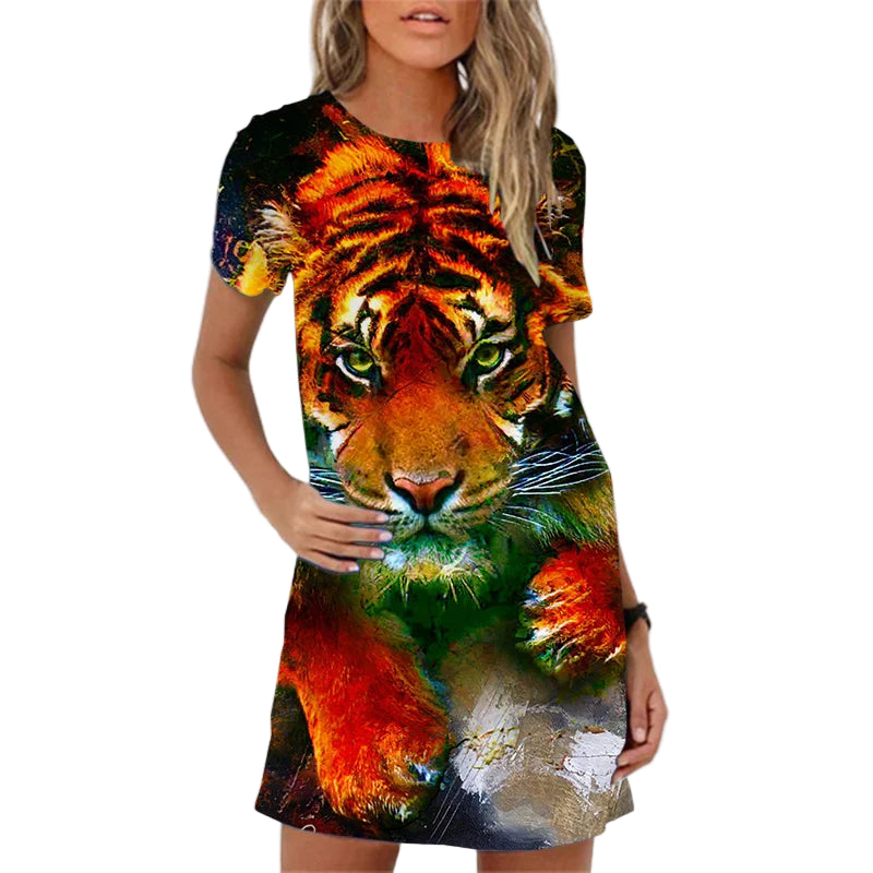 Women’s Tiger Print A-Line Mini Dress – Summer Casual Short Sleeve Style
