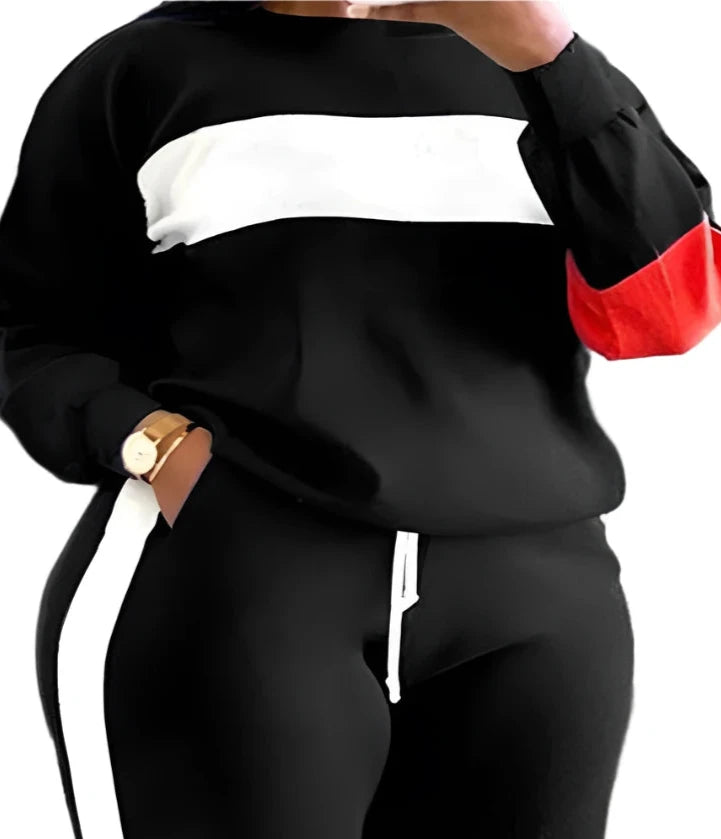 Women’s Plus Size Two-Piece Set – Long Sleeve Printed Top & Drawstring Y2K Trousers, Sweatshirt and Pants Outfit for Spring Work