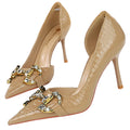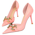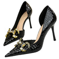 Women's 8cm Stiletto Heels – Luxury Hollow Side Pumps, Designer Metal Chain Buckle, Elegant Black & Pink High Heels for Prom, Party & Formal Events