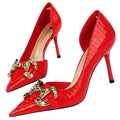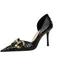 Women's 8cm Stiletto Heels. Designed for the modern, confident woman. Featuring a hollow side design, a sleek metal chain buckle, and a pointed-toe silhouette, these pumps are perfect for proms, parties, and upscale events. Available in classic black and chic pink, they blend sophistication with high-fashion appeal. Make every step a statement! 👠💖