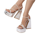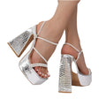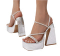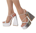 Women's Platform Sandals with Rhinestones. Featuring a stunning 14CM square heel and chic lace-up design. These trendy PU fashion pumps are the perfect blend of style and comfort. Whether you're attending a party, casual outing, or even a wedding, these sandals offer the perfect mix of elegance and fashion-forward appeal. Available in versatile colors, they will elevate any outfit for every occasion.