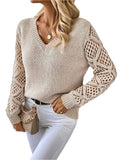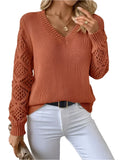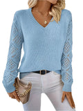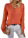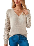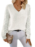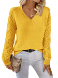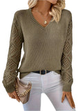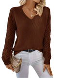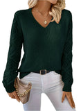 Women's V-Neck Knit Sweater - Solid Casual Fall Pullover Top