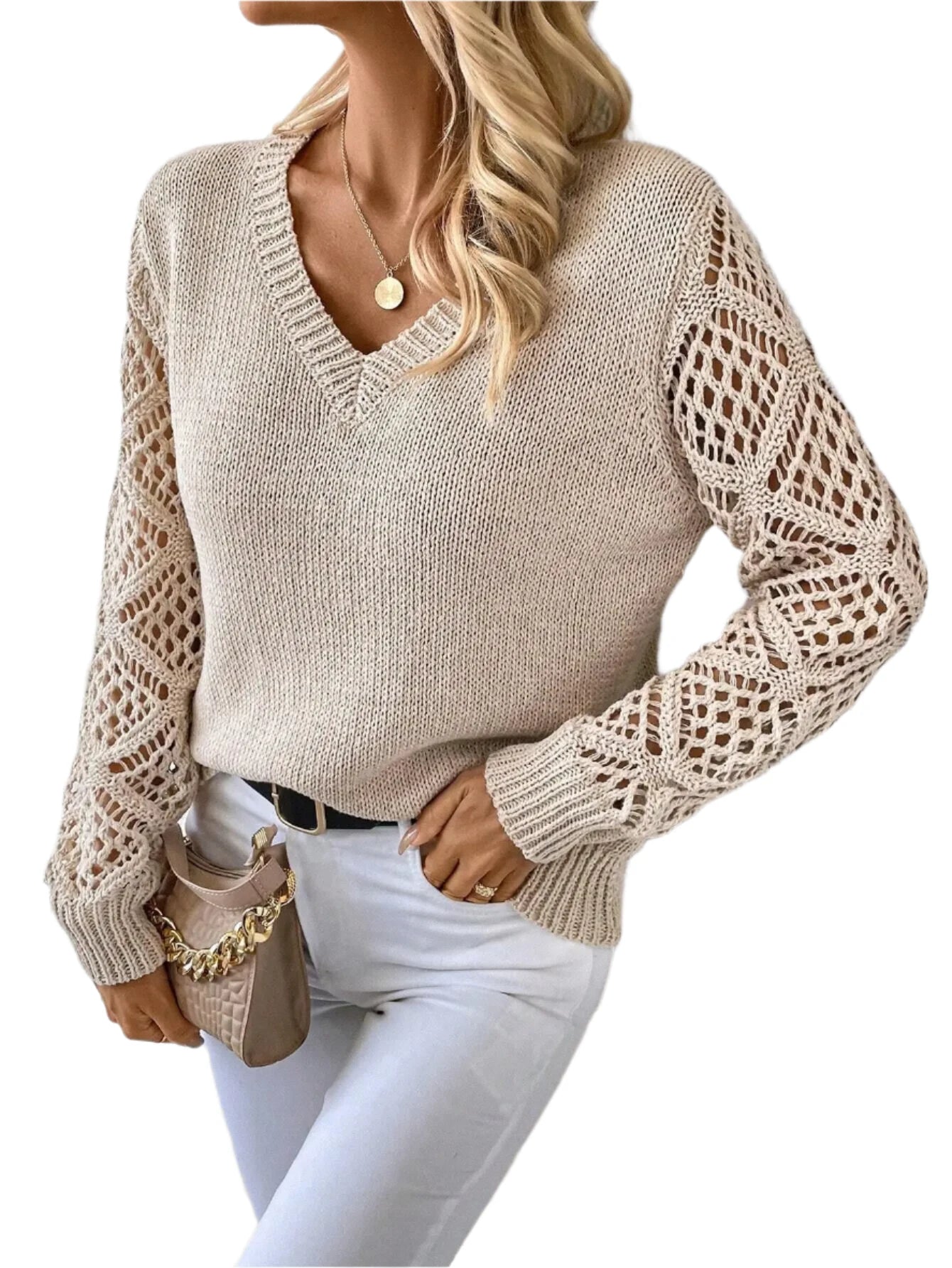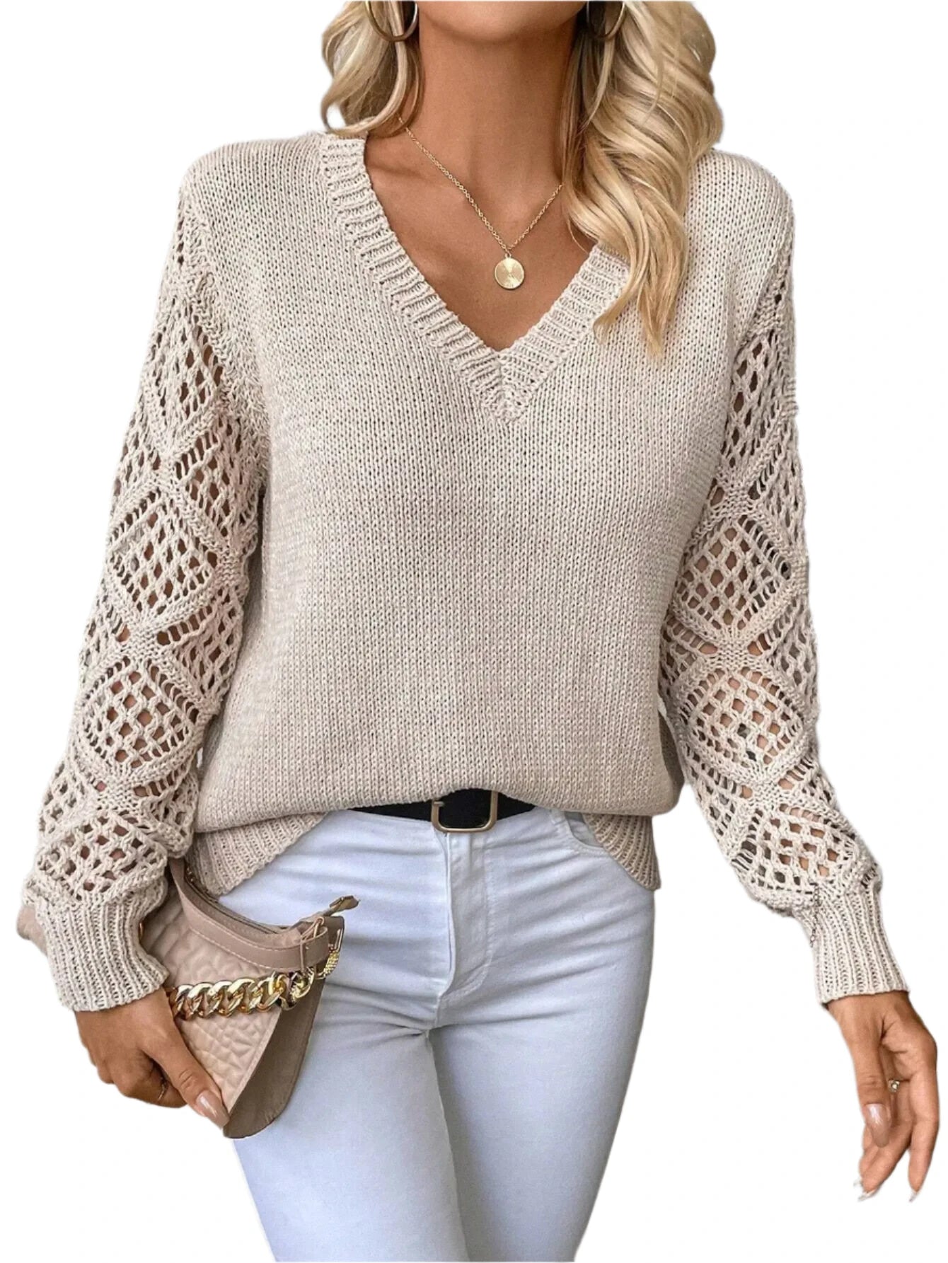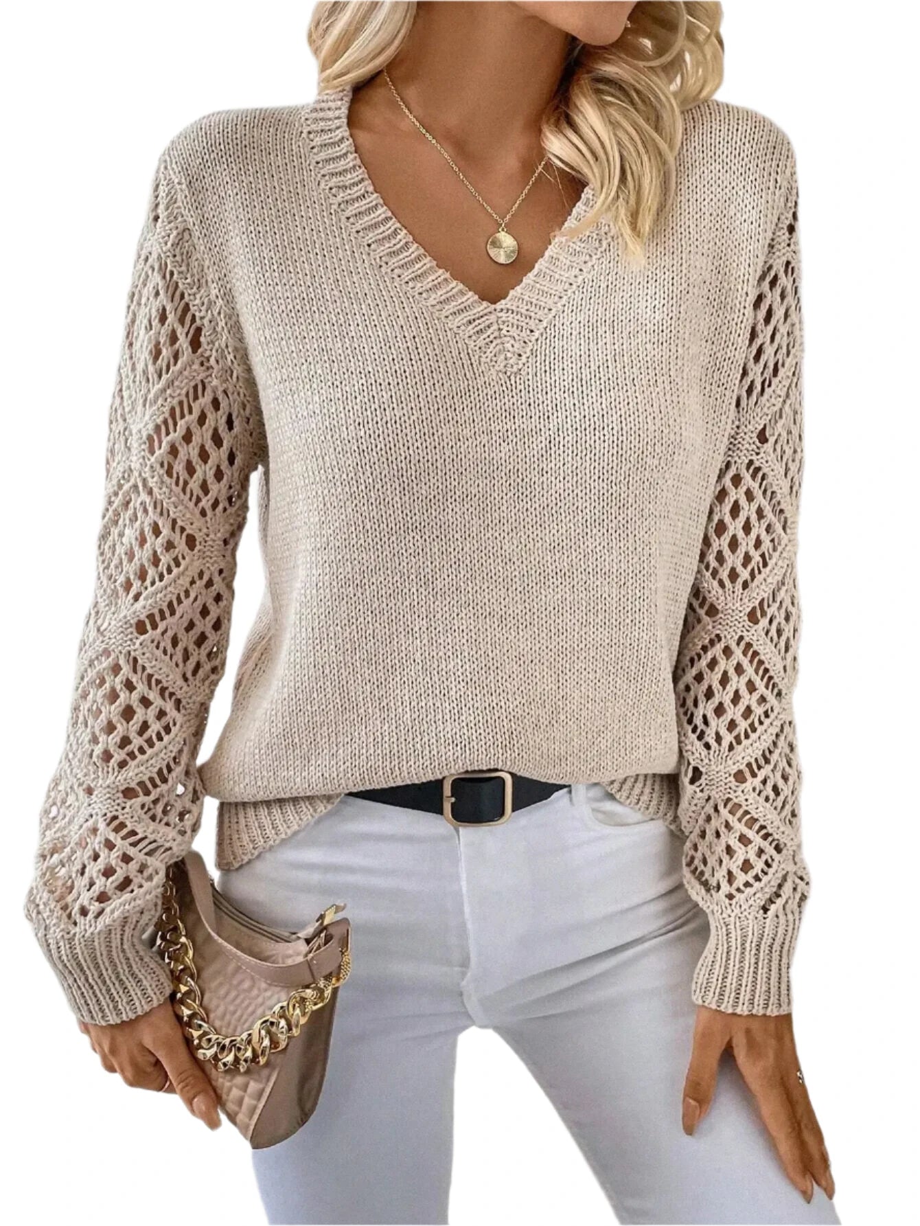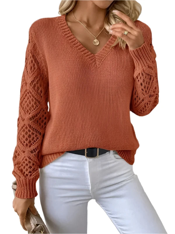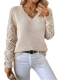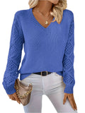 Women's V-Neck Knit Sweater - Solid Casual Pullover for Fall and All Seasons