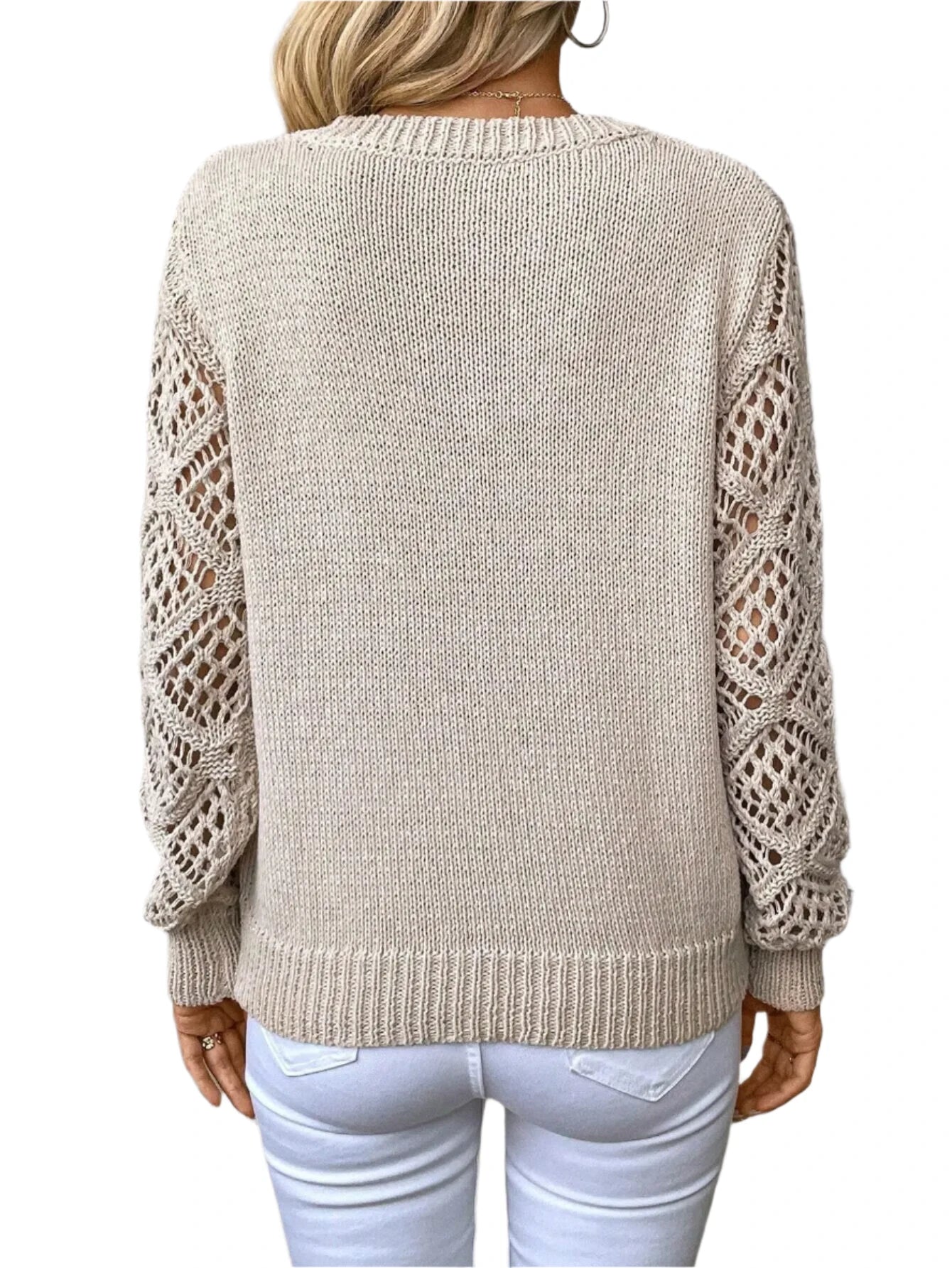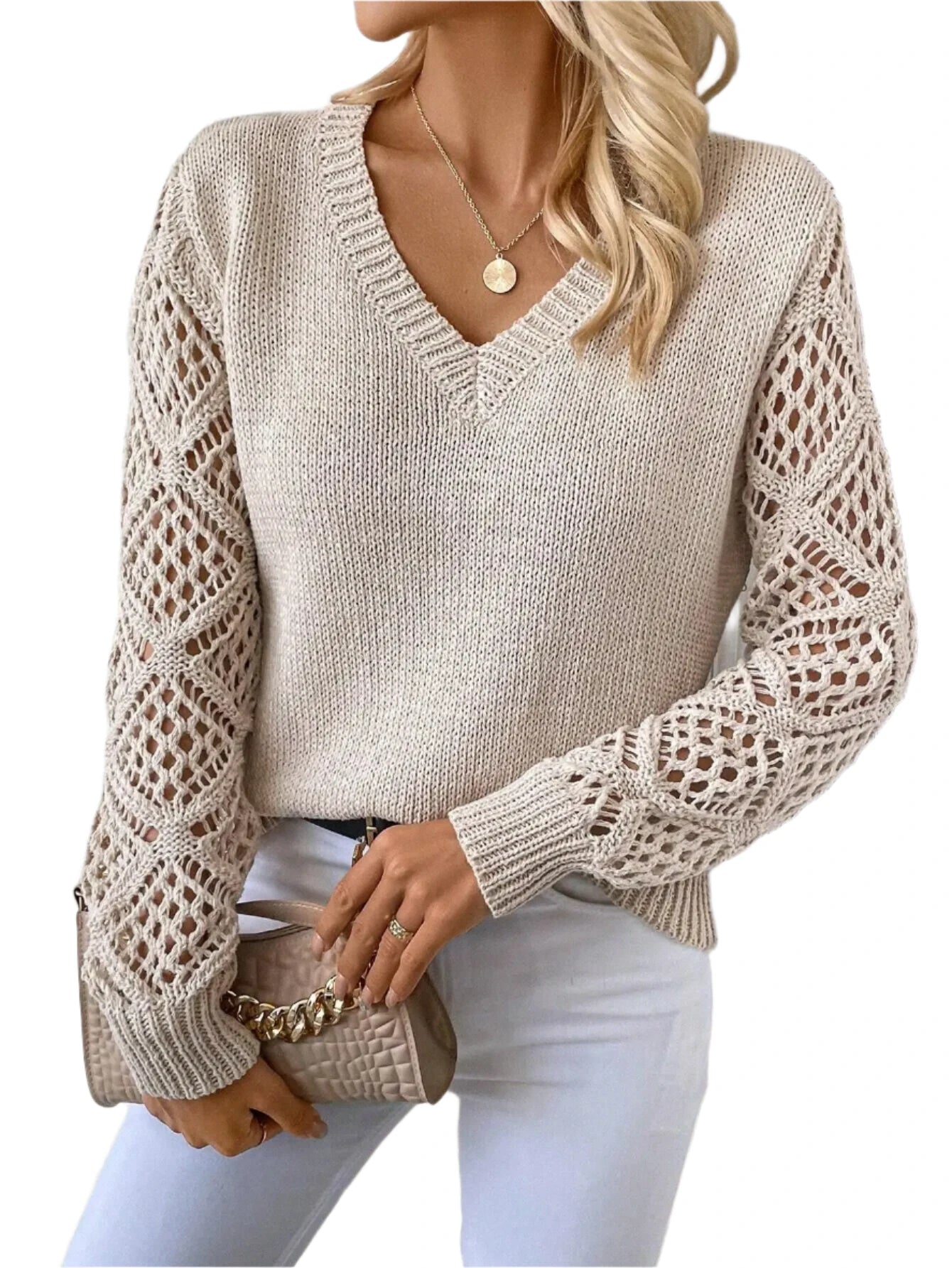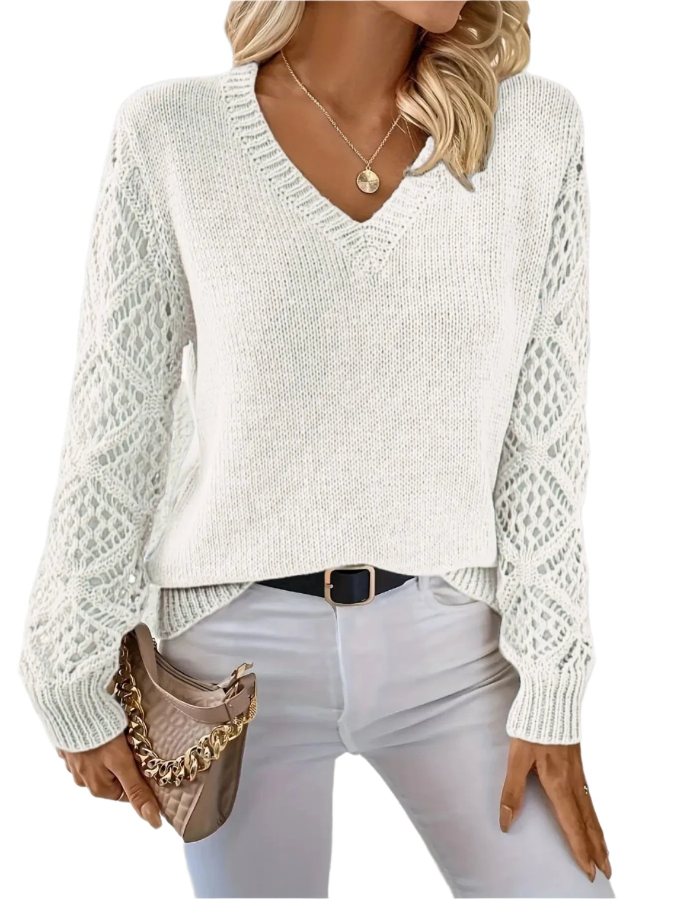 Women's V-Neck Knit Sweater - Solid Casual Pullover for Fall and All Seasons