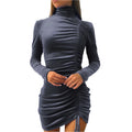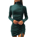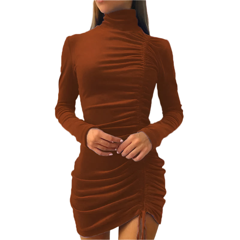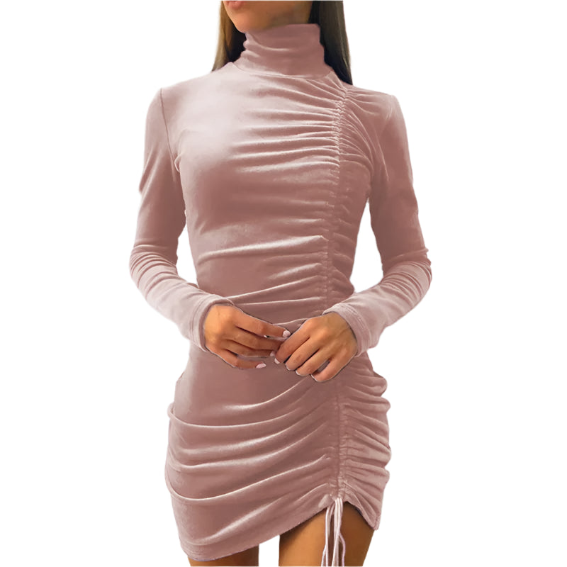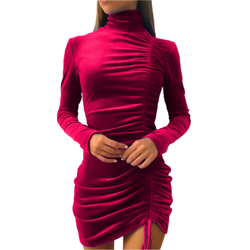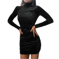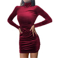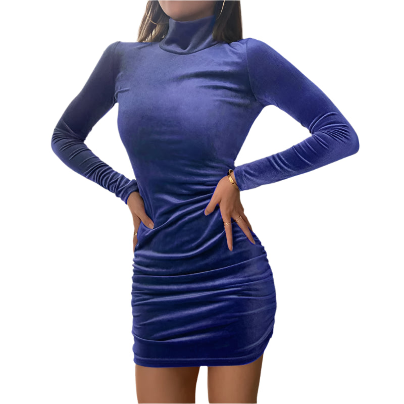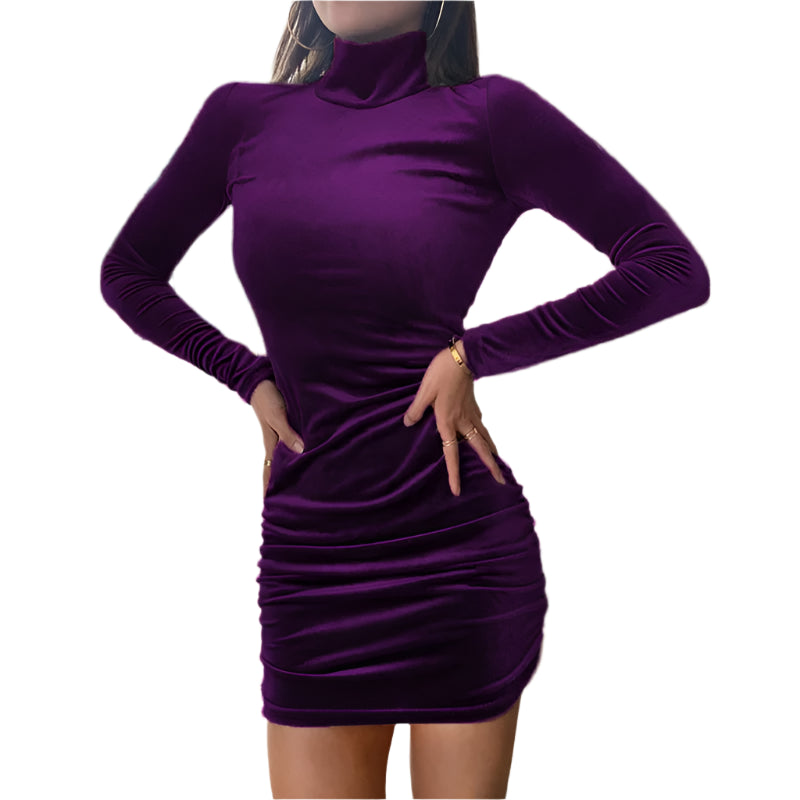 Women's Velvet Turtleneck Long Sleeve Mini Dress – Slim Fit Bodycon Autumn Party and Evening Wear